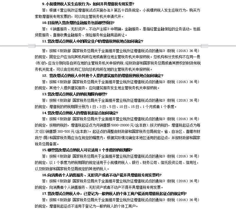 全面实施“营改增”知识问答